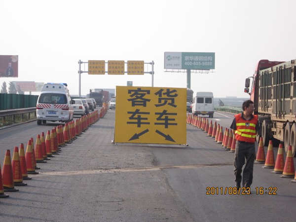 第一、對(duì)區(qū)域路網(wǎng)結(jié)構(gòu)要有一個(gè)清晰地了解,要明白經(jīng)過(guò)本路段的車輛情況,從而合理設(shè)置分流點(diǎn),有效調(diào)控車輛行駛路線。就京張路而言,進(jìn)京方向主要是蒙、晉、甘等省通過(guò)京藏高速、宣大高速及110國(guó)道、109國(guó)道、207國(guó)道進(jìn)入京張段、京新高速以及110國(guó)道懷來(lái)至宣化段,高峰時(shí)段集中在下午四點(diǎn)到次日凌晨。出京方向則主要是從北京八達(dá)嶺高速和110國(guó)道來(lái)車,高峰時(shí)段集中在晚八點(diǎn)至次日上午九點(diǎn)。根據(jù)各條道路的資源情況,進(jìn)京方向選擇丹拉高速與張石高速交匯的互通立交、宣大高速與京新高速交匯的互通立交設(shè)置分流點(diǎn),同時(shí)在丹拉高速、張承高速、京張高速及宣大高速共計(jì)12個(gè)收費(fèi)站對(duì)上道車輛進(jìn)行管控,以此達(dá)到對(duì)進(jìn)京車輛行駛路線進(jìn)行調(diào)控的目的;出京方向分流的有效地點(diǎn)設(shè)置在京張高速98公里處的土木互通。這是我們做好施工組織方案的必要條件。