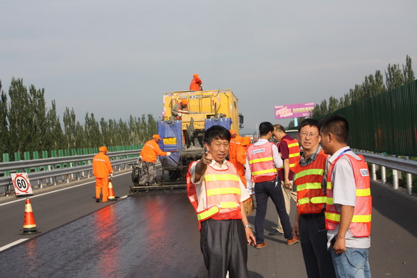 京張高速公路2015年路面微表處和標(biāo)線補(bǔ)劃工程經(jīng)過充分的施工準(zhǔn)備于8月6日正式開工。王啟成總工程師到施工現(xiàn)場(chǎng)檢查了施工情況,對(duì)工程的質(zhì)量控制和安全保暢工作表示滿意。本工程是今年迎國檢的重點(diǎn)施工項(xiàng)目之一,總投資249.94萬元,預(yù)計(jì)8月30日前全部完工。(王喜會(huì))。